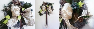 プリザーブドグリーンや木の実を使った、ちょっとシックなクリスマスリースです。