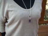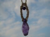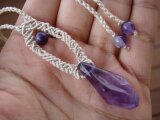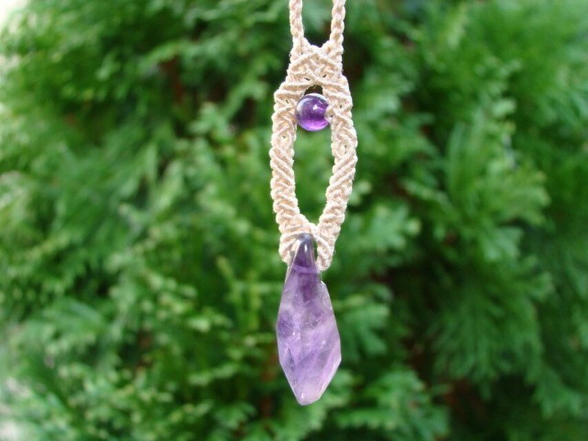 天然石(パワーストーン)アメジストとシルクコード(絹紐)を使ってマクラメ編みしたネックレス(ペンダント)です。