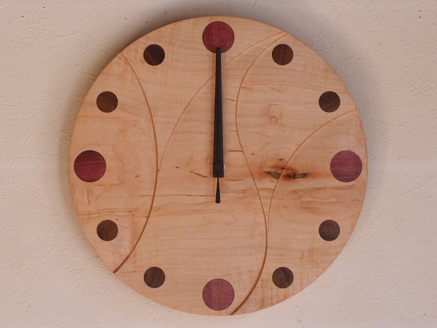 時刻のマークをはくじ(オレンジ色の木)とブラックウォールナット(黒い木)の木で埋めてみました。