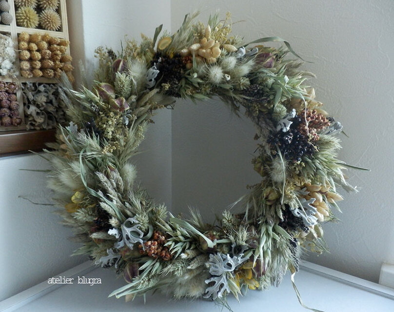 しっとりした大人色のリースで、とても素敵です。 毎回、素敵な作品をありがとうございます。
