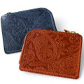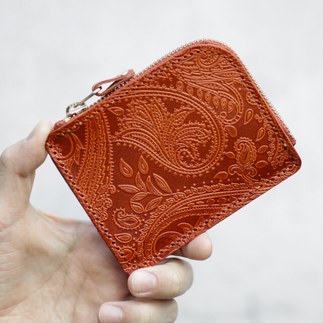 永久保証 栃木レザー ペイズリー 薄型 極小 L字ファスナー コンパクト ウォレット FARIA オレンジ 財布