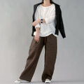 【soco】ふわっと心地いい デニムボールパンツ / ダークインディゴ b014s-din3wafuさんのパンツは3本目になりましたが、初めてのデニムです。 年齢とともにデニムが難しく感じるようになり、いつの間にかワードローブからデニムが消えていました。 久しぶりのデニムはダボッとして着心地がよく、カジュアルすぎず、とてもいい感じです。