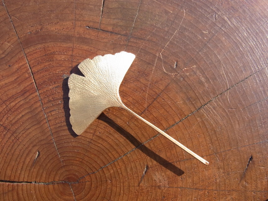 彫金技法で金属の銀杏の葉を数枚、製作しました。