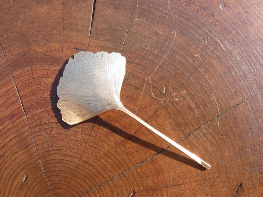 彫金技法で金属の銀杏の葉を数枚、製作しました。