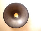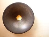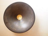 ・ブロンズ(濃茶系)の釉/中心部・下部・高台に金彩/