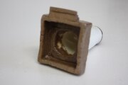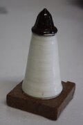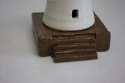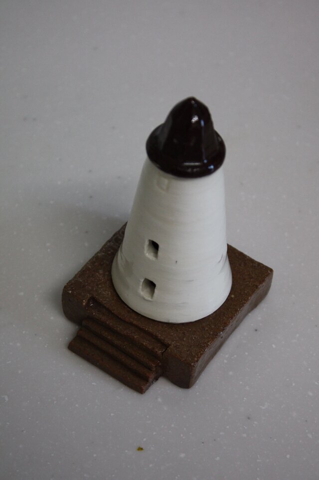 建物部分は白土に白と茶の化粧土が塗られています。土台は荒い赤土そのままです。
