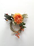 しめ縄 オレンジのキクと葉牡丹とサンキライ しめ縄 お正月 インテリア 玄関飾り