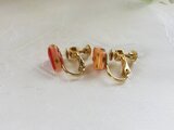 金継ぎxガラスイヤリング(ドット柄、オレンジ)
