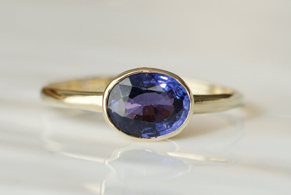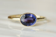カット面の鋭角さ中に入るバブルインクルージョンも含めてサファイアらしさはありますが、色は良質なタンザナイトにも似た色をしています。