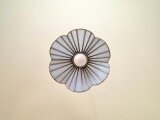透明感のあるブルーホワイトのガラスで、花びらが6枚集まってお花に見えるデザインです。