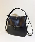 ブラックレザー(pvc)引っ張るだけリュック&ショルダー