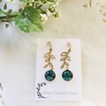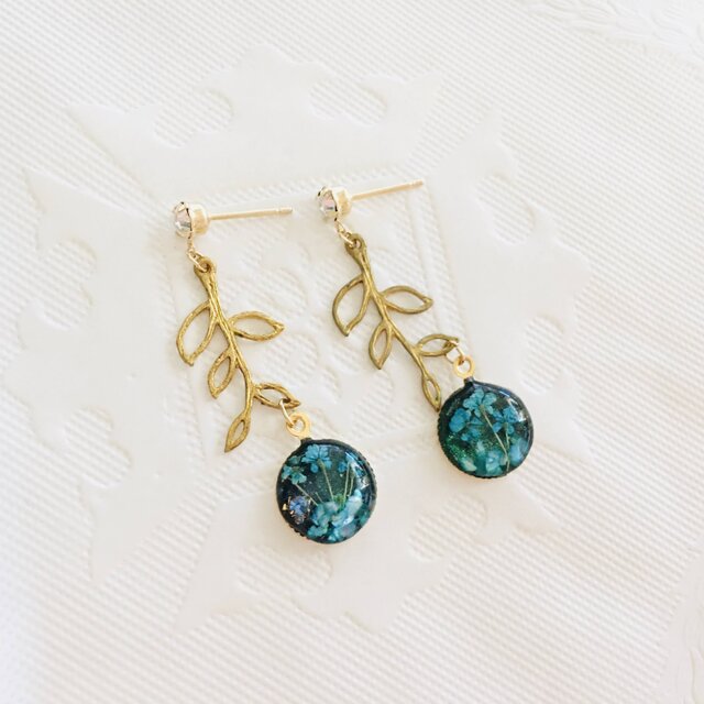 ミニ宇宙と木の葉のピアス&イヤリング(押し花入り)