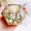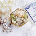 ガラスと真鍮製のアンティーク調の六角形のケースに
