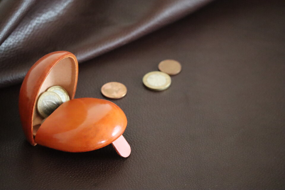 珍しい形のコインケースですが、イタリアでは古くから親しまれてきた形で、開けたフタにコインをじゃらっと出して選ぶことができます。