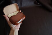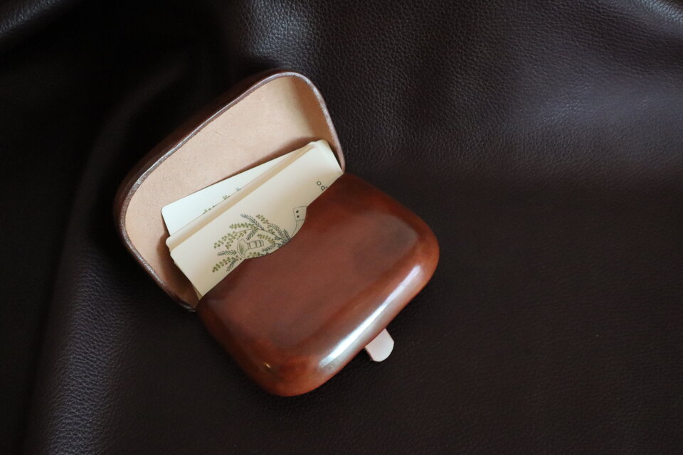 木型をお願いしている家具職人さんから、コインケースのようなころんとした名刺入れ作れないかな?とお話をいただいたことから、生まれたカードケース。