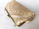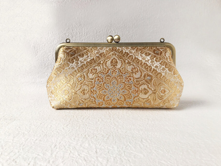 宝相華(ほうそうげ)古典文様が華やかな金糸で織り上げられた袋帯をチェーン付きクラッチバッグにリメイクしました。