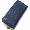 栃木レザー クロコダイル 型押し 日本製 ラウンドファスナー ロングウォレット DIEGO ネイビー 長財布 クロコ