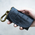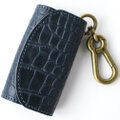 栃木レザー クロコダイル 型押し 日本製 カラビナ 付き キーケース コインケース PAOLO ネイビー 黒 本革