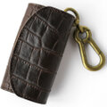 栃木レザー クロコダイル 型押し 日本製 カラビナ 付き キーケース コインケース PAOLO ダークブラウン 黒 本革