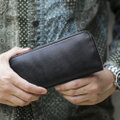 オール 栃木レザー ヴォーノアニリン 日本製 ラウンドファスナー ロングウォレット DIEGO ブラック 本革 長財