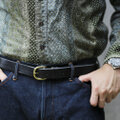 革本来の質感を楽しめ使うほどに馴染み味が出るさまを最高級の革で感じてもらえるこだわりのレザーベルトです。