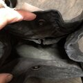 最初はゴワゴワと硬いですが使う毎に柔らかくなりデニムのようにアタリがでて馴染みます。