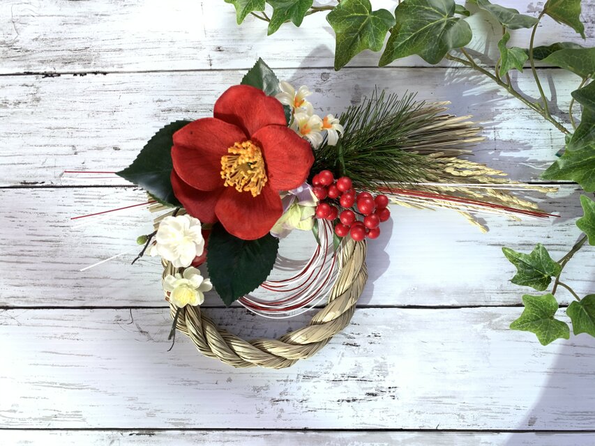 【2021迎春!】椿のお正月飾りM◇ ♯お正月飾り ♯しめ縄 ♯しめ縄飾り