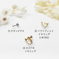 ○ ピアスは丸皿が真鍮、ポストとキャッチがチタンです。チタンはアレルギーが起こりにくい金属ですが、稀にアレルギーを起こす方がいらっしゃいます。ご使用の際はご注意ください。
