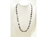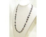 メタリックパープルの本真珠(淡水パール、バロック)と真珠光沢の美しい貝パール(黒蝶、マザーオブパール)、ブラックスピネル、オニキスのロングネックレスです。南洋真珠のネックレスなどの高級宝飾品で使われる輝きが特に綺麗なボールも使っています。
