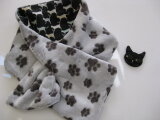 表は肉球の柄のボア生地を使ってます。裏は猫柄のネルのような生地です。