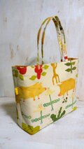 ハンプにブタや植物を手描きしたオリジナル生地から作りました。