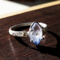 透明な水晶の中にブルーの結晶がみえる、デュモルチェライト・イン・クォーツのリング。