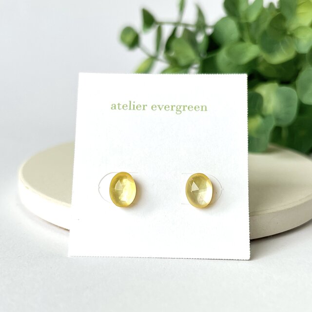 レモンクォーツに施されたカットが、見る角度によって様々な表情を見せてくれます。ゴールド色のピアス金具と合わせて、柔らかい印象のスタッドピアスです。