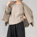【wafu】雅亜麻リネン インナー 袖スリット 黄金比率のネック角度/榛色(はしばみいろ) Mサイズ p012a-hbm1-m