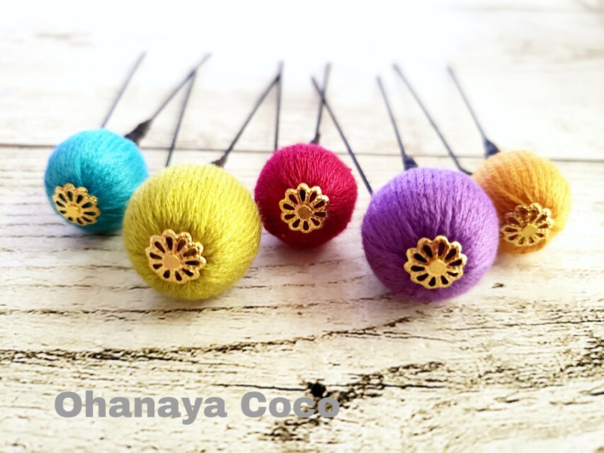 和玉ボールはカラフルな刺繍糸を丁寧に巻き付けて可愛いく仕上げました。