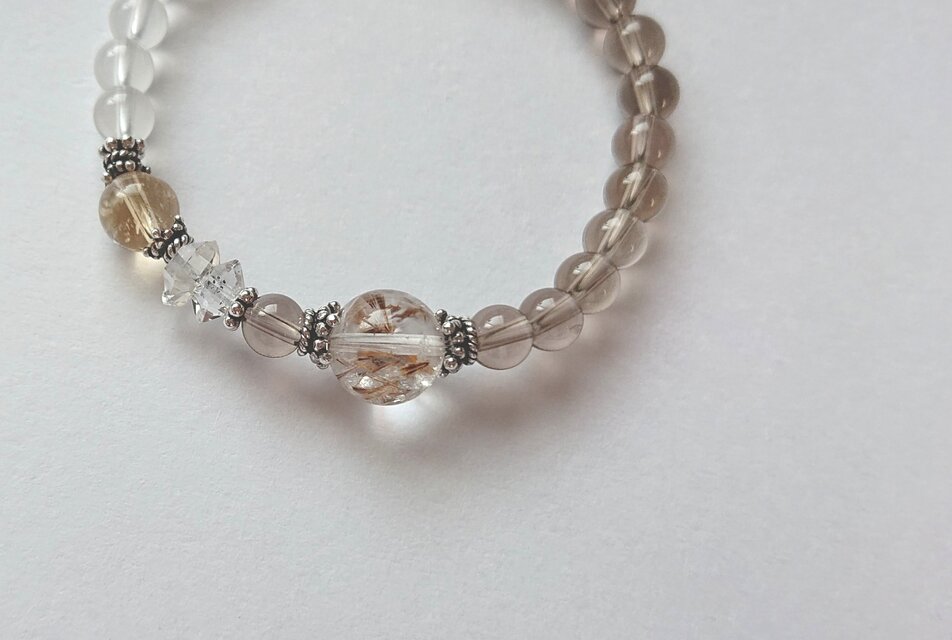 ダブルポイント水晶とシトリン、ミルキークォーツを合わせて