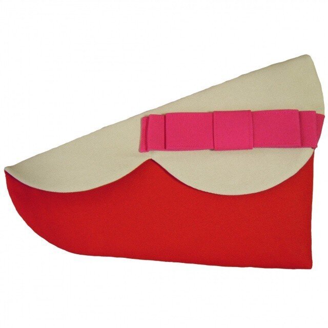 ハートをパタンと折りたたんだ型のクラッチバッグ。