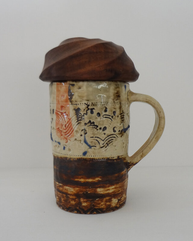 想像力に挑戦出来る様な素晴らしい作品でした. モクの蓋と陶器の色の組み合わせのセンスが抜群でした. 素敵な逸品です。