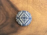 青森県津軽地方で生み出された伝統技法こぎん刺しのブローチです。