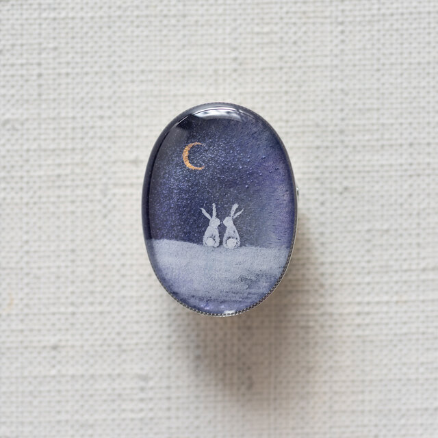 恋人うさぎを描いた絵(原画)を樹脂でとじこめました。