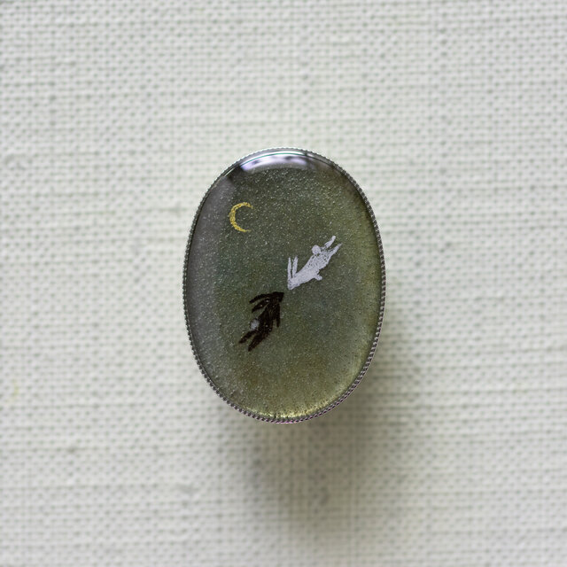 ペンダントブローチ68/黒うさぎと白うさぎ
