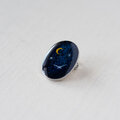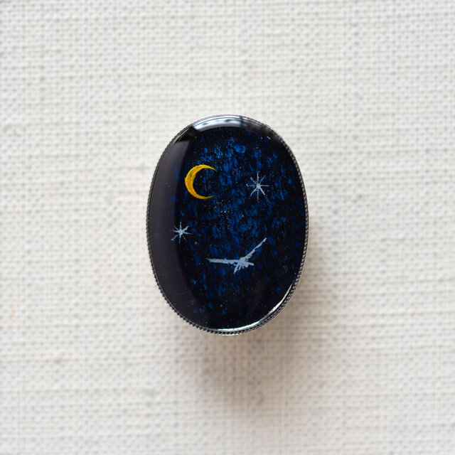 濃紺の背景に三日月と鳥を描いた絵(原画)を樹脂でとじこめました。