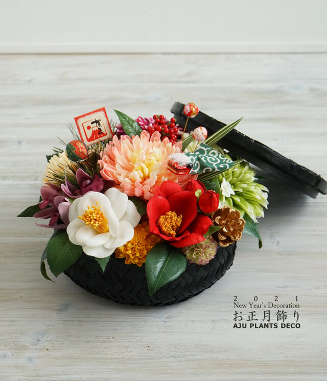 ※ アーティフィシャルフラワー(造花)で作ったお正月飾りです。