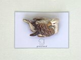 リピートです。今度の作品も大変可愛く、ぬくもりを感じます。木彫りですので軽やかなのも良いですし、毛並みがまるで本物の猫のように見えます! 付けない時は前回購入したブローチとセットで飾ります。 今回もありがとうございました!
