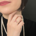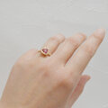 アームに朝露をあしらい、宝石を花に見立てたリングです。