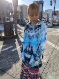 今回は大人気のブルーとブラックのタイダイ染め。着こなしやすくクールな色合いに幻想的な曼荼羅模様を染め上げました。