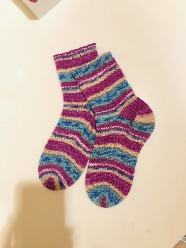 ドイツのOpal糸で一針一針、丁寧に編みました。