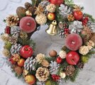 再販 りんごと木の実のリースno.3 ゴールドのベル2020:30cm クリスマス 木の実