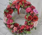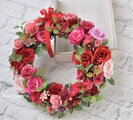 紅 2021 バラ・スイトピー リース:リボン 赤 グリーン