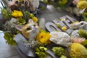 黄色いピンポンマムやビリーボタンの丸いお花と
